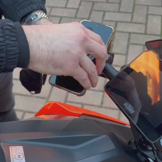 Il DBR Phone Holder garantisce una tenuta sicura grazie al sistema brevettato dual-stage, anche su strade sconnesse. Il tuo smartphone rimane stabile in ogni condizione di guida.